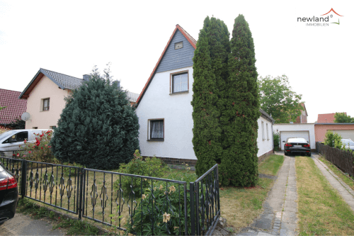 Immobiliendetails: 🏡 | Einfamlienhaus ↔️ | 83m² Wohnfläche 🌏 | Machern ⭐ | Garten, Garage, Schuppe, Gewä…